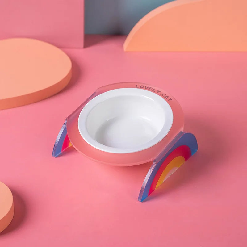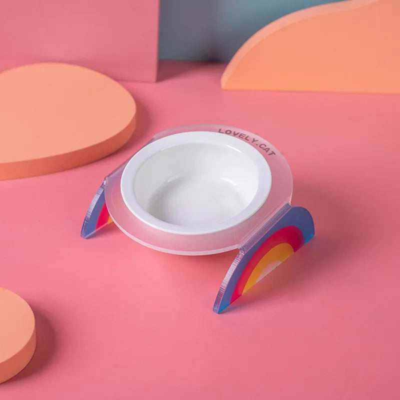 Color: ceramic single Bowl rainbow transparent single Bowl rack, ceramic single Bowl Rainbow Pink single Bowl rack, ceramic single Bowl rainbow yellow single Bowl rack, ceramic single Bowl rainbow blue single Bowl rack, ceramic double bowl rainbow transparent double bowl rack, ceramic double bowl rainbow pink double bowl rack, ceramic double bowl rainbow yellow double bowl rack, ceramic double bowl rainbow blue double bowl rack